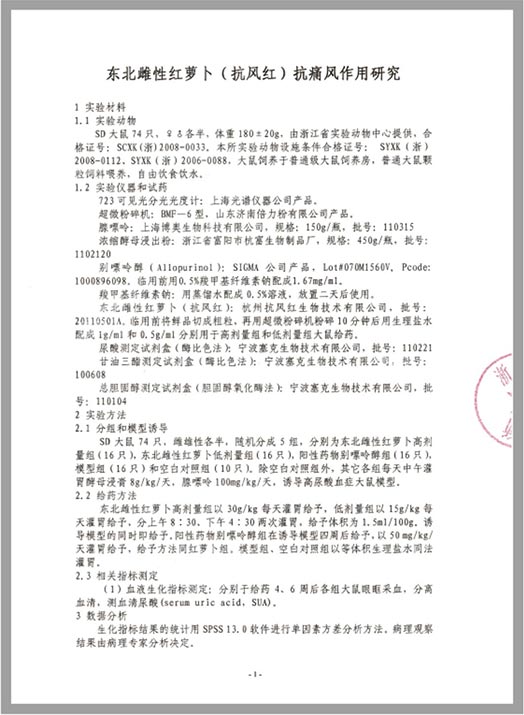 東北雌性紅蘿卜抗痛風作用研究