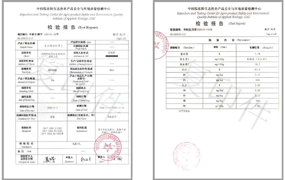 東北雌性紅蘿卜營養(yǎng)檢測報告